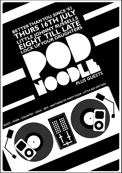 Few of us ever expected this and I think Ben Mills must have been drunk when he agreed it, but it’s here, it’s real, it’s actually going to happen. DJ Pod Noodle will be playing his extremely eclectic mix of, well, bloody anything really. A fully flared start stop iPod mix session that’ll leave you confused but very happy. Oh, and they’ve let him have a mic as well. Lock up you daughters and don’t change your Facebook status to hungover if you bunk off work.