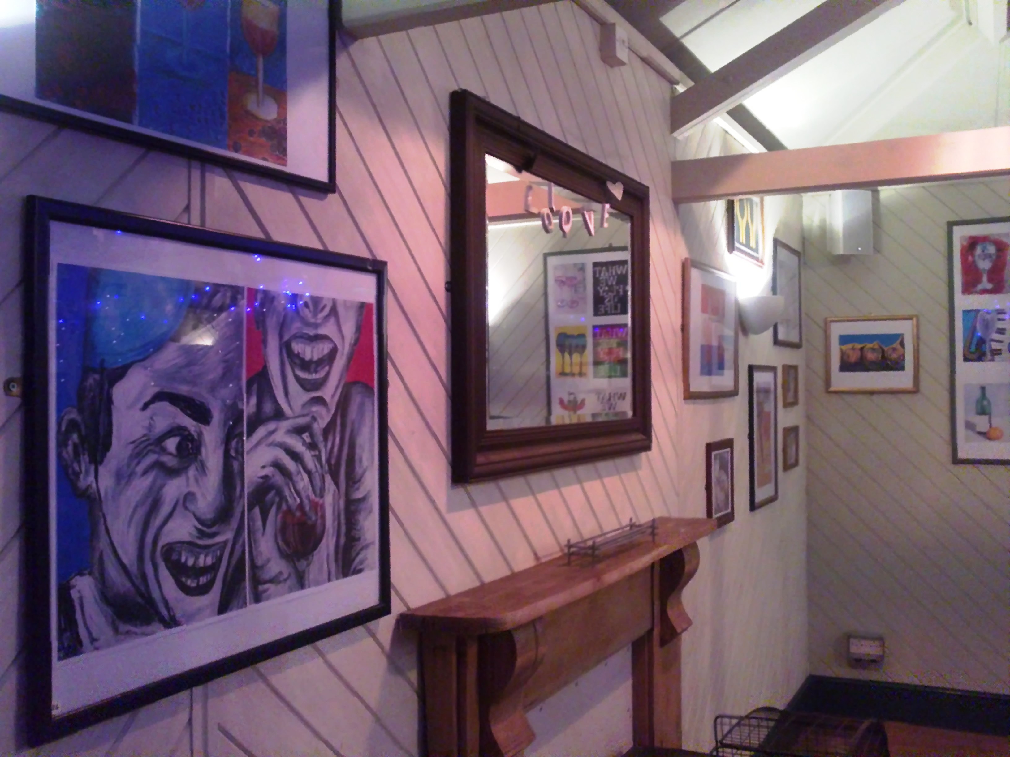 Students on the AS 2-D art course at South Downs College, Portsmouth are showing some of their work in Rosie’s Wine Bar (Elm grove, Southsea). The students have worked really hard through January to produce a wide range of work to a very high standard according to their tutor Mark Kellett. There are 33 pieces of framed work on display some examples of work below.