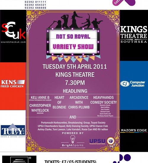 The University of Portsmouth Brightsparks Entrepreneurial Society are hosting the entertainment extravaganza ‘The Not So Royal Variety Show’ at the Kings Theatre, Southsea. This is..