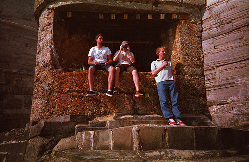 Last weekend saw a record amount of people get out in the sunshine. We spent the early hours at the car boot sale then spent the day hanging out on the seafront. Andy, myself and Dr.Nick throw the local postcode at the round tower in Old Portsmouth. Recoginise. Ha. 35mm photo from Jubru.