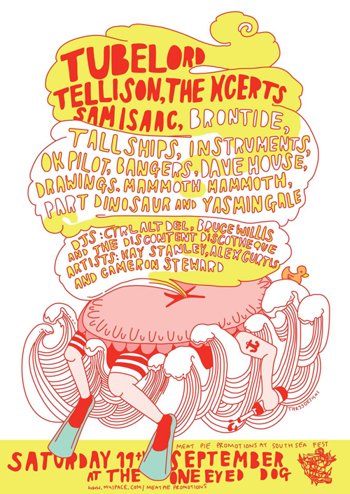 “As well as having some awesome bands like Tubelord, Tellison, The Xcerts and Sam Isaac (who are some of the most exciting up and coming bands in the UK at the moment) I have some great dj friends coming down to play like Ctr Alt Del of This Is Not Revolution Rock fame from Kingston and also The Discontent Discoteque who I went to University with in Falmouth. As well as some great underground artists from across the UK like Kay Stanley from Birmingham who does Cut-Out, Faridah Newman who makes jewellery under Sugar Mouse and Alex Curtis (Thr33 Designs) who made the poster.