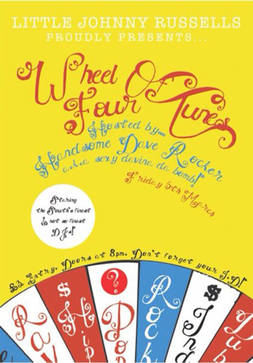 Sorry, I forgot to get this up. Somethings slip, but this night will definitely not be slipping. Proper Southsea face Dave “Handsome Dave Rocker’ Morgan’s Wheel of Four Tunes returns. This time at The Little Johnny Russells. This promises to be a gaurenteed night of fun for sure, and if you like fun then this is for you…