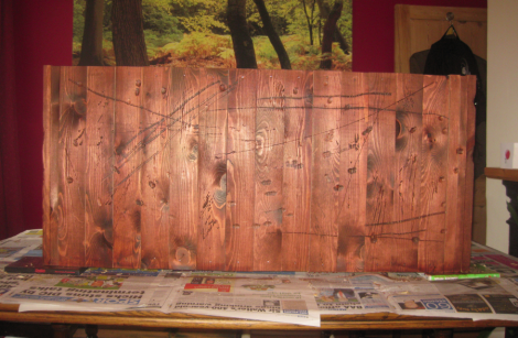 The sneaky photo I posted last week of the Strong Island Co. crate was in fact a fake. I’ve been working on a design for friends and their new venture. I’ll keep it a bit hush for now, but here’s some of the development. Take one freshly made ply crate. Stain it mahogany. Beat and scratch the hell out of it with hammers, screwdrivers a plastering trowel and some sandpaper. Re-stain the dents and scratches to make them darker. Then scratch my head about how to authentically paint the logo on without making a mess of it…
