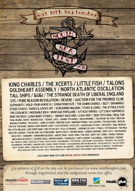 Plenty more acts are to follow so make sure you keep yourself up to date over at www.southseafest.com, Facebook and also Twitter.