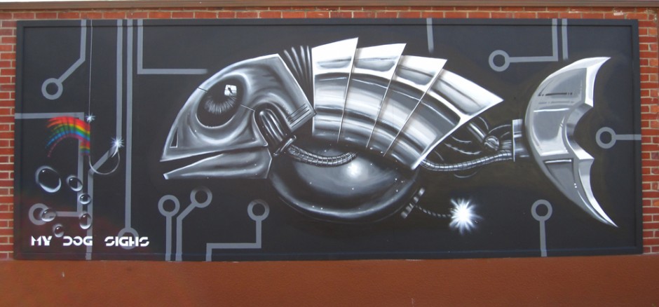 Check out the development of Mecha Fish over at My Dogs Flickr, and also check out the canvas that he has kindly donated to our 2nd Birthday Raffle. Cheers MDS.