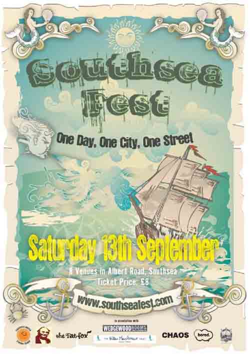 Another one in followed in December 2007 hosted again at LJRs and Havana which saw Little Fish perform for the first time. 3rd April 2008 saw the 3rd Southsea Fest held LJRs and the Fat Fox & Atrium. Whilst this was happening plans were being made made for a 10 venue spectacle in Sept 08 which lead to the format for Southsea Fest as we now know it. The following year in 2009 saw media attention from Art Rocker, NME and a small feature in The Guardian with the festival getting some much deserved coverage and again in the latest installment this year the Southsea Fest has acheived rave reviews across the board. Sept 2010 saw the Kings Theatre added to the festival venue list becoming the showpiece venue. The Strange Death of Liberal England, The B of the Bang, Dawn Chorus and Revere were the lucky chosen ones to grace the Kings stage that day.