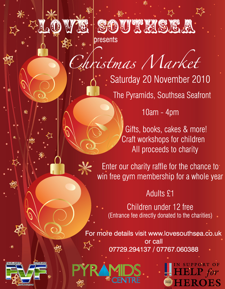 This Saturday 20th November the Love Southsea Christmas Fair comes to The Pyramids in Southsea. Full of amazing stalls packed with ideas & gifts for Christmas 2010! Entrance fee is £1 and goes directly in to the Help For Heroes pot. Opens 10am to 4pm.