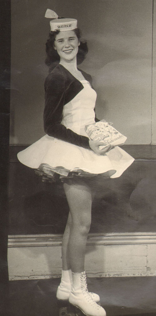 Bens mum just sent us over these photos from 1953 of Janet Elizabeth Courtney working at the Skate Rink. She skated with a dance troupe called Skaterskades at Southsea Skating Rink at 16 years of age. Awesome stuff. Keep on sending us any information you have on the rink/park. We’re building up a nice little archive. I wonder if anyone has a copy of the Skaterskades leaflet/magazine Janet is holding?