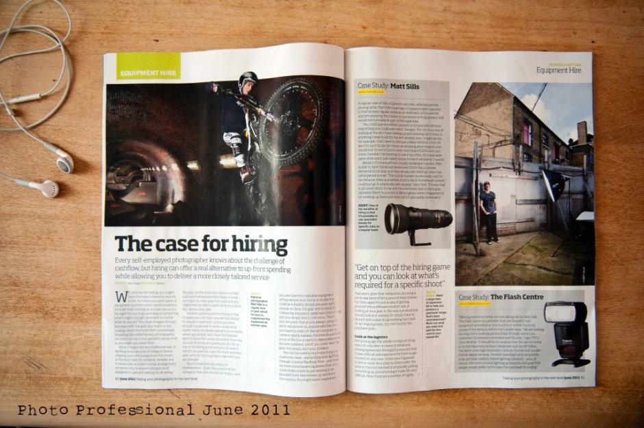 Recently Matt was also interviewed by Photo Professional magazine about hiring specialist kit for jobs. He told them how it is impossible for a working photographer to own all of the kit they need so hiring offers a good solution when you need something special for a job. Click the magazine spead for a closer look at Matts Case Study.