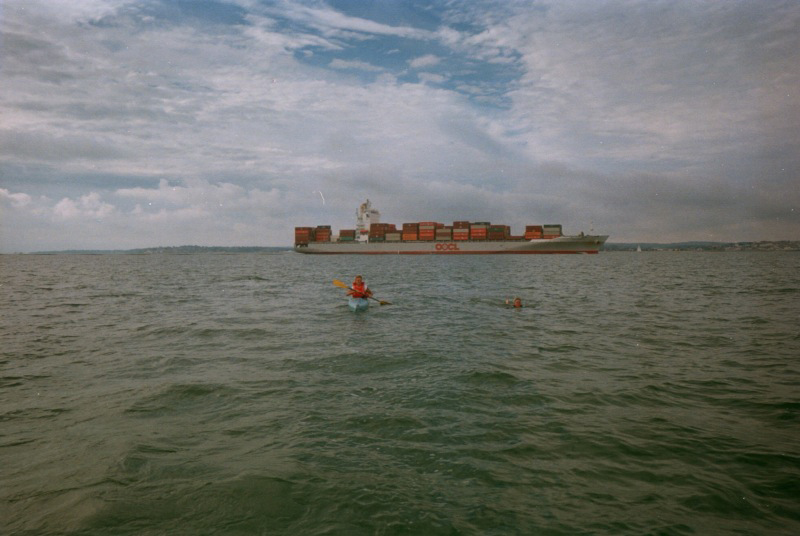 We then headed toward Gosport to allow for the tide sweeping us off course, once about a mile or so off the Haslar wall we continued on avoiding hovercrafts and car ferries, Gordon was in radio contact with all the shipping and let them know I was in the water. Mike in the canoe was kind enough to remind me not to worry as I apparently I had right of way over them all !