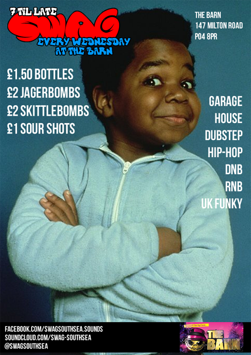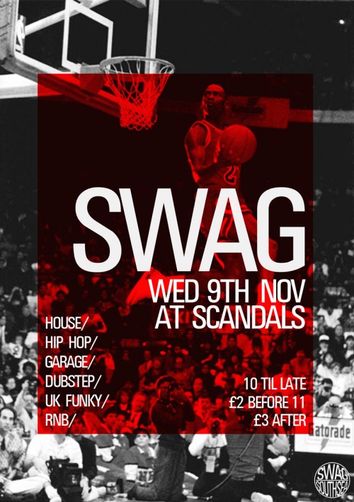 Swag is a new music event starting on the 19th October at The Barn in Milton. Swag will be having a party for their launch night and will be playing hip hop and playing house, UK funky & dub step. To find out more check their Twitter and their Facebook (if you write your name on their guestlist wall on Facebook you get free entry). The flyer was designed by James Runciman and his Twitter.