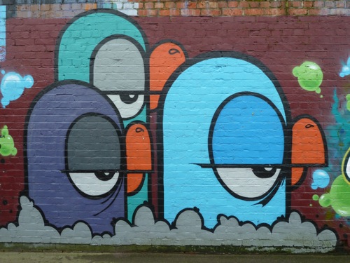 You’ve been walking round with your eyes shut if you haven’t seen the work of Fark dotted round our fair city. A prolific wall painter and wheatpaster, Fark has been decorating the walls of Portsmouth (and pretty much everywhere else) with his bold graphic cartoon like characters in super clean lines. Ring leader of the paint crew PAM (Pompey Alleys Mush), Fark has worked tirelessly to paint and repaint the outside of Fratton park with the rest of the PAM crew and visiting writers. If you haven’t been down there you really should check it out.