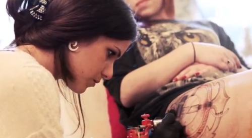 Kiss My Ink’s Kaya Moon carried out the epic piece and the following video captures her detailed work whilst The B Of The Bang provide the soundtrack with the awesome ‘The Forest Jake’. High five Frankie. Seriously gnarly.