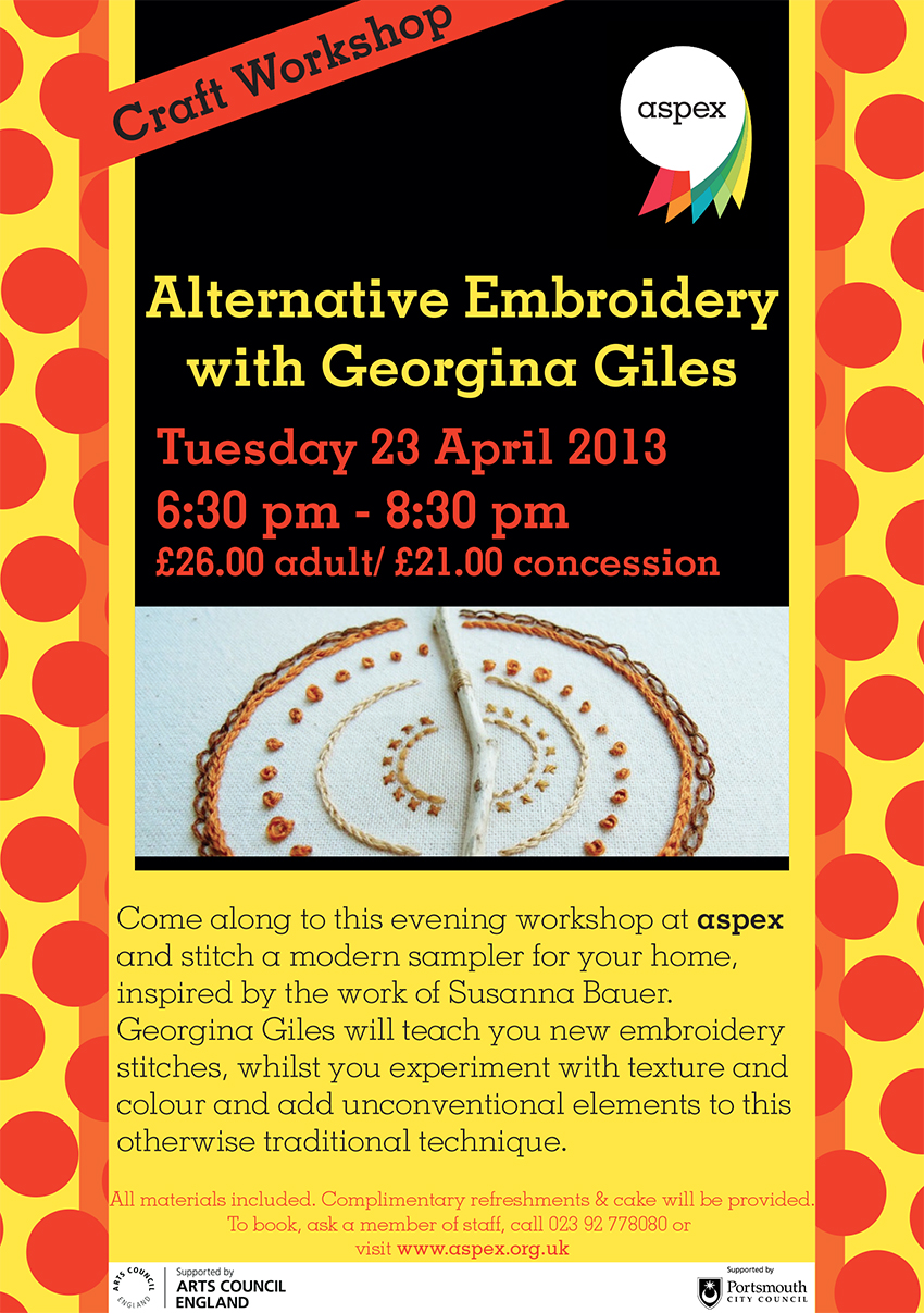 Let artist & maker Georgina Giles teach you new embroidery stitches, whilst you experiment with texture and colour and add unconventional elements to this otherwise traditional technique.