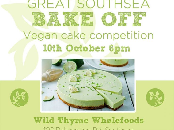 This evening sees the Great Southsea Bake Off at Wild Thyme Wholefoods in Southsea, a vegan cake competition on Monday 10th October from 6pm to 9pm. The..