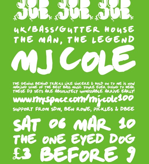 Music & Bands MJ COLE at the One Eyed Dog by Tristan Savage 4 March SHARE Facebook Twitter Pinterest The Legendary Genius behind tracks like ‘Sincere’ & ‘Hold on to Me’ is now making some of the best bass music you’re ever going to..