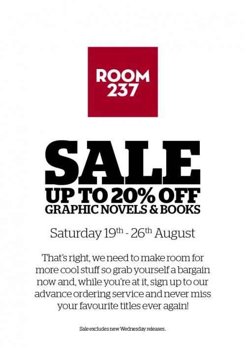 A quick heads up that Room 237 on Elm Grove are having a 20% sale on graphic novels and books from the 19th to the
