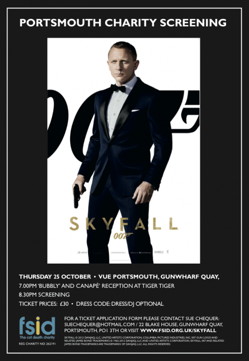 Film Charity Screening of Skyfall by Stuart Barker 9 October SHARE Facebook Twitter Pinterest On Thursday 25th October VUE cinema, Gunwharf Quays are hosting a special screening of James Bond’s Skyfall. The event has been organised as a fund..